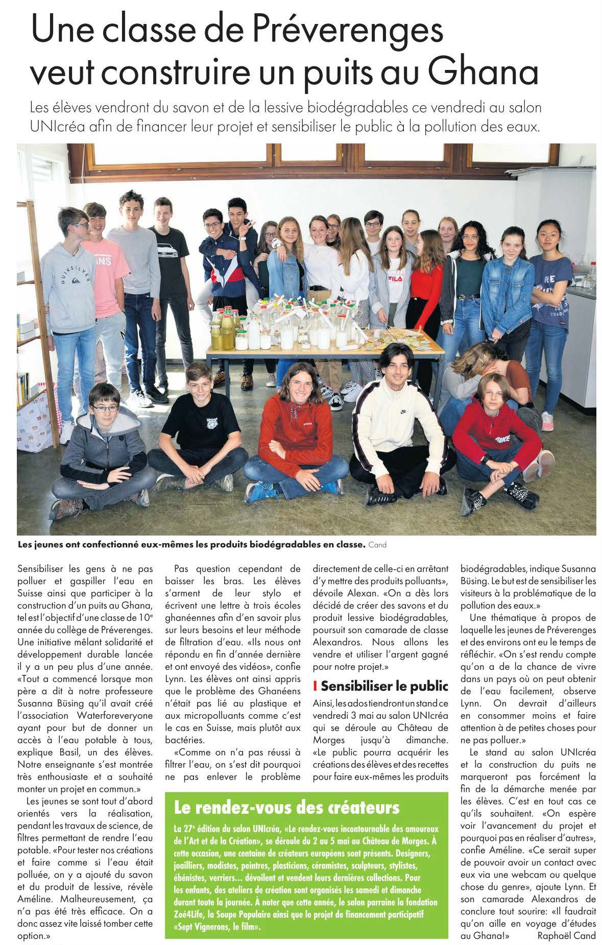 JDM: Une classe de Préverenges veut construire un puits au Ghana