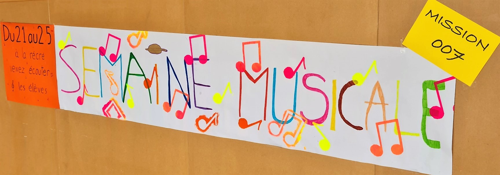 MISSION: Assis sur les gradins des escaliers extérieurs, sous la salle de travail des maîtres, écoutons les musiciens, les musiciennes de notre collège.